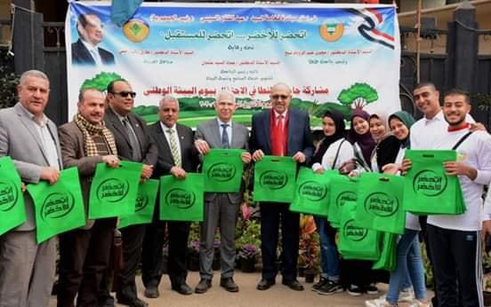 من جانبه، أعرب الاستاذ الدكتور/ كمال عكاشة نائب رئيس الجامعة للدراسات والبحوث عن خالص سعادته بهذه المبادرة التي تقام تحت رعاية فخامة السيد الرئيس عبد الفتاح السيسي ولمدة 3 سنوات متتالية ويأتى ذلك فى اطار تعليمات السيدة وزيرة البيئة بزراعة الاشجار ورفع الوعي البيئى لدى المواطنين.