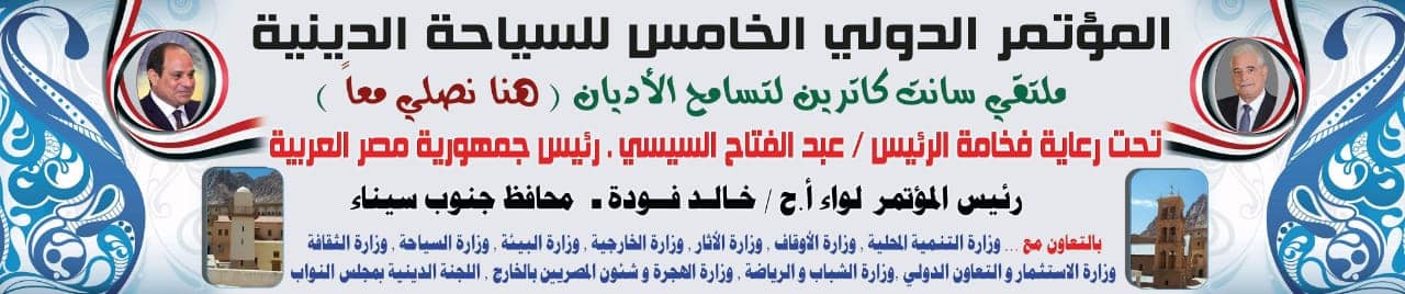 عقد اللواء خالد فودة، محافظ جنوب سيناء، المؤتمر التنسيقي لمناقشة الاستعداد للمؤتمر الدولي الخامس للسياحه الدينيه ملتقي سانت كاترين لتسامح الاديان هنا نصلي معا، والذي سيعقد بمدينة سانت كاترين في الفترة من ٩ الي ١١اكتوبر ٢٠١٩ تحت رعاية فخامة الرئيس عبد الفتاح السيسي رئيس جمهورية مصر العربية ويترأسه اللواء خالد فودة، محافظ جنوب سيناء، بالتعاون مع وزارات التنمية المحلية، الأوقاف، الآثار، الخارجية، البيئة، السياحة، الثقافة، الاستثمار والتعاون الدولي، الشباب والرياضة، الهجرة وشئون المصريين بالخارج، واللجنة الدينية