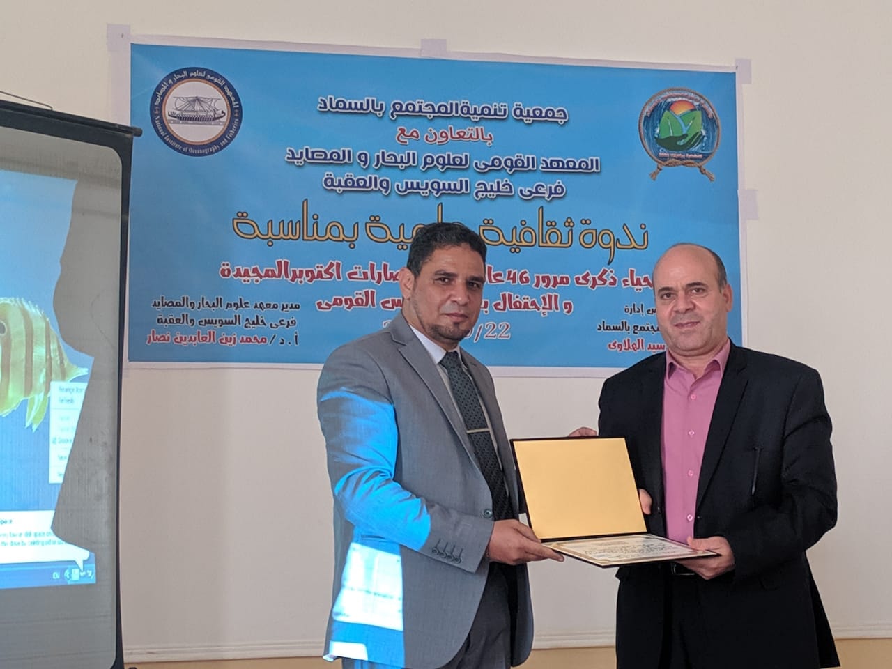 فى إطار المشاركة المجتمعية لمعهد علوم البحار وبمناسبة الاحتفالات باعياد اكتوبر المجيد وعيد السويس القومى اقيمت اليوم الثلاثاء بفرع المعهد لعلوم البحار والمصايد فرع خليجى السويس والعقبة تحت رعاية ا. د شوقى سبع رئيس المعهد سلسلة ندوات ثقافية علمية.بقاعة رائد علوم البحار ا. د حامد جوهر وذلك بالتعاون مع جمعية السماد لتنمية المجتمع. ومدرسة الصفا الثانوية المشتركة ومديرية الشباب والرياضة.