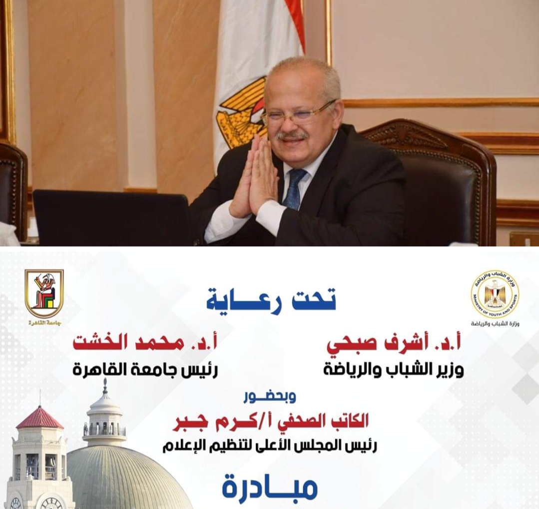 تستضيف جامعة القاهرة برئاسة الدكتور محمد عثمان الخشت، في العاشرة صباح غد الخميس، الدكتور أشرف صبحي وزير الشباب والرياضة، في ندوة بقاعة الاحتفالات الكبرى ضمن سلسلة ندوات مبادرة "مصر أولًا .. لا للتعصب" وذلك بحضور الكاتب الصحفي كرم جبر رئيس المجلس الأعلى لتنظيم الإعلام، ونواب رئيس جامعة القاهرة وعمداء الكليات والطلاب.