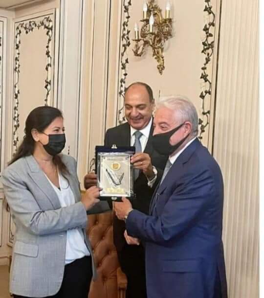 وفي نهاية اللقاء ، قدم اللواء خالد فودة ، درعَ المحافظة ، السيدة فريدة خميس ، تقديراً لجهودها الكبيرة ، في دعم ورعاية أبناء جنوب سيناء .