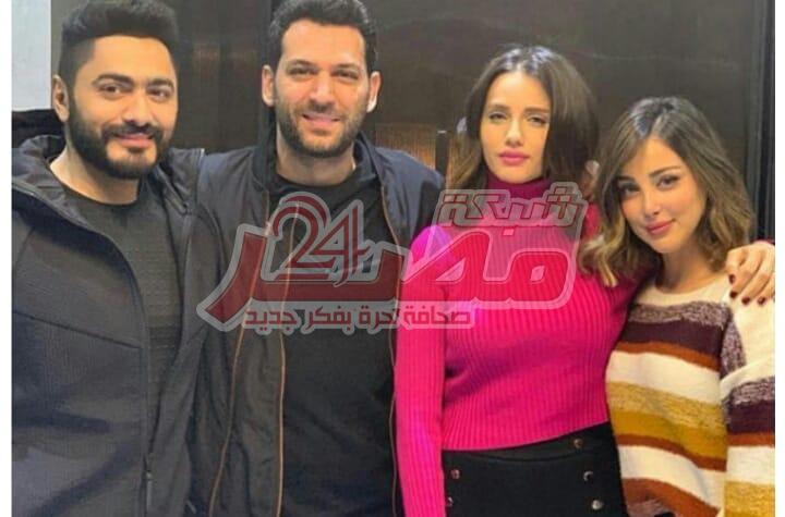 تامر حسني يستقبل الفنان التركي مراد يلدريم في...