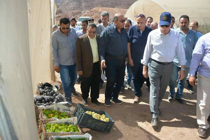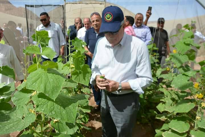 تفقد اللواء خالد فودة محافظ، جنوب سيناء،اليوم الاحد، مزارع تجمع ابو غراقد 2 و 3 بمساحه 60 فدان للمزرعتين بعدد 40 صوبه زراعيه ينتج من خلالها انواع مختلفه من الخضروات والفواكه و800 نخله "برحي" و الاحواض السمكيه ومزارع الاغنام وانتاج للموالح والزيتون والجوافه والطماطم والخيار والفلفل الرومي والشطه والباذنجان والفاصوليا والباميه والفلفل الرومي والجوافه .
