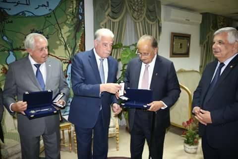 وقام المحافظ في ختام اللقاء بتقديم الهدايا التذكاريه لرؤساء الإتحادات .