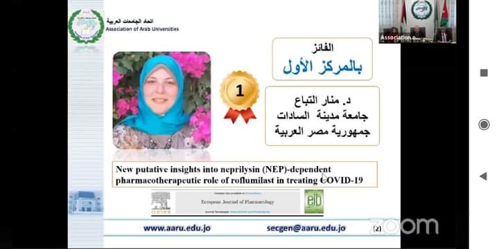 والذي قدمته للمؤتمر العلمي الدولي الذي عقده اتحاد الجامعات العربية اليوم تحت عنوان(الجامعات العربية ودورها في مواجهة تحديات جائحة كورونا : الجهود البحثية والتوعوية) وقد تنافست الباحثة المصرية مع مجموعة من الباحثين العرب من عدة دول عربية حيث تم اختيار بحثها للفوز بالجائزة الاولى