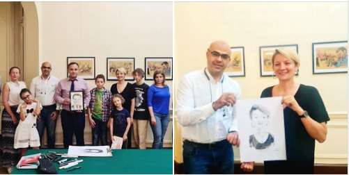 نظم المركز الثقافى الروسى بالقاهرة "البيت الروسى" بالتعاون مع مشروع ذاكرة الكاريكاتير ورشة رسم بورتريه لرسام الكاريكاتير الفنان "هانى عبد الجواد" لأطفال الجالية الروسية بالقاهرة وذلك على هامش معرض "روسيا فى ذاكرة الكاريكاتير المصرى".