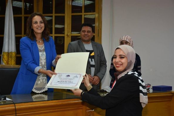 أ . خالد شبانة (رئيس قناتي نايل لايف ونايل كوميدي)، و أ. أحمد عبد العليم (مخرج ومدير عام السياحة والمنوعات بقناة النيل الدولية) ا. تغريد العصفورى الكاتبة والمخرجة بالهيئة الوطنية للاعلام ، وتم عرض فيلم "مصر بعيوننا" التي بلغت مدته 13 دقيقة علي لجنة التقييم وتكون فريق عمل الفيلم من (17 طالب)، ويتناول الفيلم رؤية شبابية لطلاب قسم الإعلام للمشاريع التنموية المستقبلية التي تشهدها مصر تحت رعاية فخامة السيد الرئيس عبد الفتّاح السيسي؛ من خلال رحلة يقوم بها فريق العمل لعدد من المشاريع التنموية مثل "الصوب الزراعية، هضبة الجلالة، المتحف المصري الكبير، العاصمة الإدارية،...) وعرض أبرز خصائص هذه المشاريع وأهميتها لمصر والفائدة التي ستعود على الأجيال القادمة من كل هذه المشاريع، كما يوضح الفيلم روح الوطنية والإنتماء التي يشعر بها هؤلاء الطلاب وتأكيدهم على أن مصر ستتصدر العالم مستقبلاً في كل المجالات.