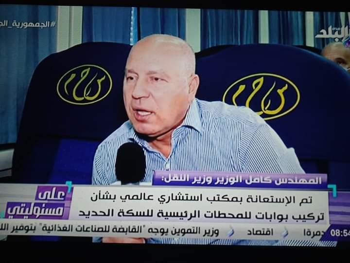 أكد الفريق كامل الوزير وزير النقل والمواصلات في تصريح رسمي للاعلامي أحمد موسى في برنامج علي مسؤوليتي علي قناة صدى البلد أثناء رحلة تجول السيد الوزير محطات القطار بداية من محطة مصر إلي محطة ديروط بمحافظة أسيوط، علي إلتزام السكة الحديد بتقدم الخدمات للمواطنين بكفاءة عالية الجودة وبأسعار تناسب الظروف المحيطة والمعيشة، وتطوير المنظومة بأكملها ، وكل من يخالف القانون والعمل بالسكة الحديد يقعد في بيته.