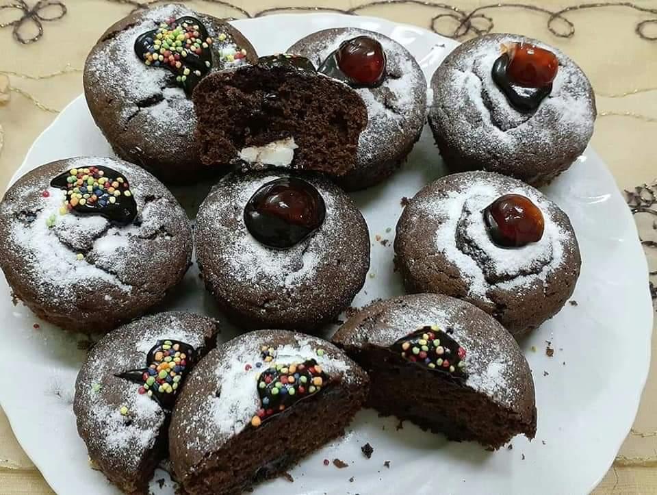 ثم نصب من الخليط في ورق الكب كيك ثم نضع قطعه شيكولاته ثم نضع من الخليط مره مره في فرن ساخن لمده ربع ساعه