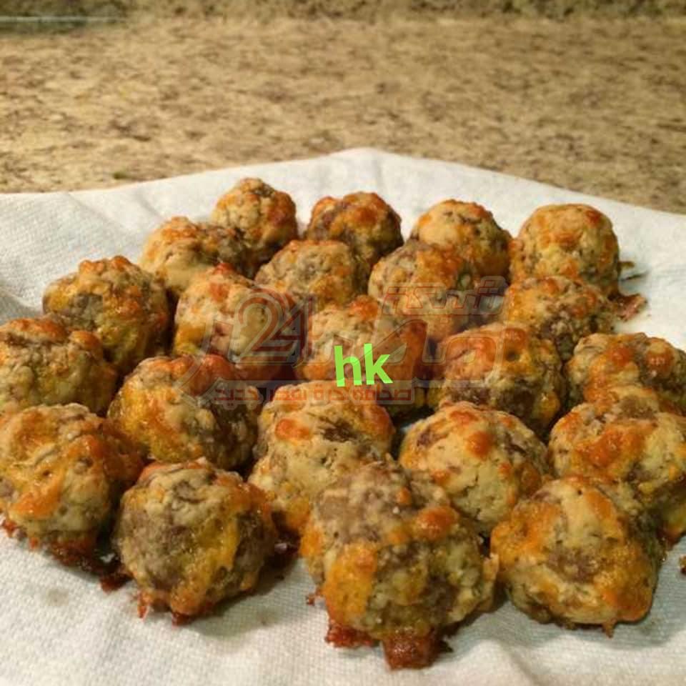 نصف كيلو سجق 2 كوب جبنة المبشورة كوب دقيق. بيضة مخفوقة ملعقة صغيرة. بيكنج بودر . ربع ملعقة صغيرة بابريكا 4 ملعقة كبيرة زبدة مذابة 2 بصل مبشور ملح فلفل كزبرة فريش طريقة التحضير * سخني الفرن على درجة حرارة 180 درجة مئوية * اخلطى الدقيق مع البيكنج بودر و الملح وفلفل و البابريكا جيدا * ضيفى الجبنة المبشورة ثم ضيفى البصل المبشور و الزبدة و البيضة و اخلطى جيدا * ضيفى السجق المفروم و اخلطى جيدا بالايد * نقوم بتشكيل الخليط الى كرات ثم يرص على صينية الفرن بورق الزبدة مع الضغط عليه جيدا * ادخليه الفرن حتى تكتمل النضج لمدة 25 دقيقة و يقدم والف هنا