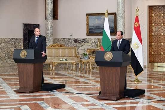 " فخامة الرئيس/ رومن راديف رئيس جمهورية بلغاريا، والوفد المرافق السيدات والسادة، يسعدني في البداية أن أرحب بفخامة رئيس بلغاريا ضيفاً كريماً في زيارته الأولى لمصر، والتي تأتي تتويجاً لمسار التقارب الذي تشهده العلاقات الثنائية بين بلدينا خلال الأشهر الأخيرة، حيث استقبلتُ في أكتوبر الماضي بالقاهرة رئيس وزراء بلغاريا لبحث سبل الارتقاء بمختلف مجالات التعاون، ونستكمل اليوم تلك المباحثات المثمرة التي تعكس الإرادة القوية لدى الدولتين في المضي قدماً نحو تعزيز أوجه العلاقات الثنائية على شتي الأصعدة لا سيما السياسية والاقتصادية. كما أود أن أؤكد اعتزازي بما يجمع بلدينا من علاقات تاريخية ممتدة على مدار أكثر من تسعة عقود شهدت العديد من أوجه التعاون والتنسيق المشترك، وهو الأمر الذي يؤكد قناعتنا الراسخة بتعدد فرص وإمكانيات التعاون التي تخدم صالح الشعبين المصري والبلغاري. وفي هذا الإطار فإنه لمن دواعي سروري أن أعلن عن إطلاق مجلس الأعمال المصري البلغاري المشترك كأحد أهم نتائج زيارة فخامة رئيس بلغاريا إلى مصر، والذي نتوقع أن يكون له مردود إيجابي كآلية أساسية لتعزيز العلاقات الاقتصادية وزيادة الاستثمارات والتبادل التجاري الذي يتجاوز حالياً حاجز المليار دولار، وهو ما يجعل مصر الشريك التجاري الأول لبلغاريا في أفريقيا والشرق الأوسط. الحضور الكريم، لقد عقدنا اليوم جلسة محادثات بناءة، وتطرقنا خلالها لسبل تعزيز العلاقات الثنائية سياسياً، واقتصادياً، وعسكرياً، فضلا عن التعاون في إطار المؤسسات والمحافل متعددة الأطراف، كما استعرضنا القضايا الإقليمية والدولية ذات الاهتمام المشترك، وقد أظهرت هذه المناقشات توافقاً في الرؤي إزاء العديد من التطورات وسبل التعامل مع عدد من الأزمات الراهنة من أجل التوصل إلى حلول سلمية لها، الأمر الذي يؤكد ضرورة استمرار التنسيق والتواصل فيما بيننا دعما لاستقرار منطقتيّ الشرق الأوسط والبلقان. كما شهد لقائي مع فخامة الرئيس "رومن راديف" تبادلاً للرؤى حول سبل تعزيز التعاون المشترك والتنسيق الأمني في مواجهة خطر الإرهاب، وقد أكدنا أهمية تضافر الجهود الدولية في التصدي له والقضاء عليه من جذوره، كما عرضتُ الرؤية المصرية بشأن ضرورة وضع استراتيجية شاملة لمكافحة الإرهاب للتعامل مع مختلف جوانب تلك الظاهرة، بما في ذلك التصدي للجهات والدول الداعمة والمساندة للجماعات والمنظمات الإرهابية والمتطرفة، وتطرقنا أيضا لأزمة المهاجرين غير الشرعيين وسبل معالجتها في إطار من المسئولية المشتركة وتقاسم الأعباء، وأوضحت في هذا السياق الجهود والمسئولية التي تقع على كاهل مصر سواء فيما يتعلق بتأمين حدودها أو استضافتها لأعداد كبيرة من اللاجئين. وأود بهذه المناسبة أن أعرب عن خالص تقديري لمواقف بلغاريا المتوازنة إزاء التطورات الجارية في مصر والتي تعكس تفهما واضحاً لما نواجه من تحديات متصاعدة في خضم الواقع الإقليمي الصعب الذي نعيشه. وختاماً، أؤكد مرة أخرى اعتزاز مصر بما يجمعها ببلغاريا من روابط تاريخية عميقة، والتي تشكل أساساً قويا للانطلاق بعلاقاتنا الثنائية إلى آفاق أرحب وبما يلبي طموحاتنا المشتركة، كما أود أن أجدد ترحيبي بفخامة رئيس بلغاريا "رومن راديف"، وأشكره على دعوته لي لزيارة دولة بلغاريا الصديقة، وأن أعرب عن خالص اعتزازي بشخص فخامته، وتطلعي للعمل سويا لما فيه صالح بلدينا وشعبينا الصديقين. وشكراً جزيلاً.".