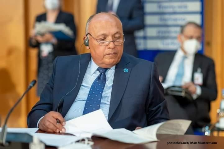 في البداية أتوجه بالشكر لحكومة ألمانيا الاتحادية على الدعوة لهذا الاجتماع الهام في تلك المرحلة المفصلية من الأزمة الليبية، وأرحب بوجود دولة الرئيس/ عبد الحميد الدبيبة، رئيس حكومة الوحدة الوطنية، متمنياً له وللمجلس الرئاسي بقيادة الدكتور محمد المنفي التوفيق والسداد في مهمته في خدمة مصالح الشعب الليبي الشقيق وتحقيق تطلعاته نحو مستقبل أفضل. كما أرحب بالأخت العزيزة معالي الوزير نجلاء المنقوش.