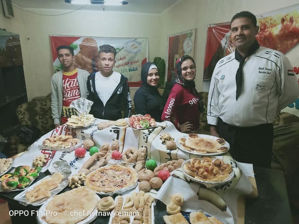 أبدع الشيف عماد فاروق فى كورس المخبوزات المجاني بمقر الجمعية الفرعونية بالمعادى تحت رعاية أحمد عطية رئيس مجلس الإدارة وبحضور الدكتور شريف عباس و الشيف حفناوى والشيف عامر طنطاوى ولجنة التنظيم المكونة من الشيف حنان يوسف والشيف منى شحاتة والشيف ميمى يونس والشيف مروة الجارحي ومجموعة من المتدربات من مختلف المحافظات