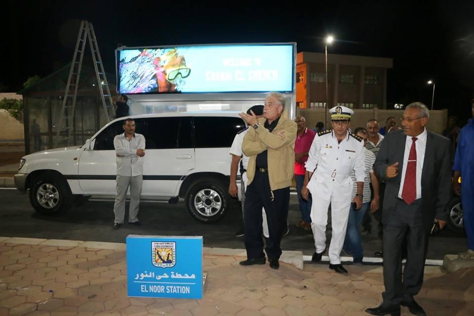 حيث قام اللواء خالد فوده، محافظ جنوب سيناء، في الساعات الأولي من صباح اليوم الخميس بتفقد محطة حي النور المتطورة بحي النور بشرم الشيخ والتي تشمل رصف وإنارة وتجميل وكشك انتظار للجمهور والزائرين مكيف ومزود بخدمة "الواي فاي" المجاني كخدمة للمواطنين لاول مرة، ومزود أيضا بشاشات عرض، والمحطة مصممه طبقا لأحدث التقنيات التكنولوجية وبها سبل الراحه لكبار السن وذوي الاحتياجات الخاصة..