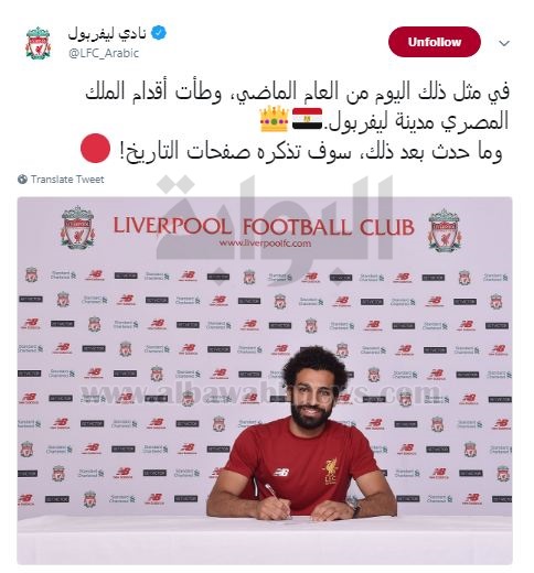 أحتفل نادى ليفربول الإنجليزى ، اليوم بمرور عام ، على انضمام النجم المصرى