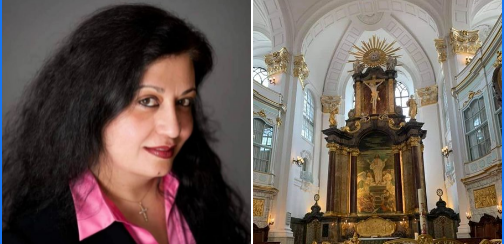 وها أَنا لَكَ أَقولُها... أَمامَ مَذْبَحِ الإِلَهِ... في هَذا المَكانِ المُقَدَّسِ... وَالمَليءِ بِأُناسٍ مِنْ شَتَّى الأُمَم...