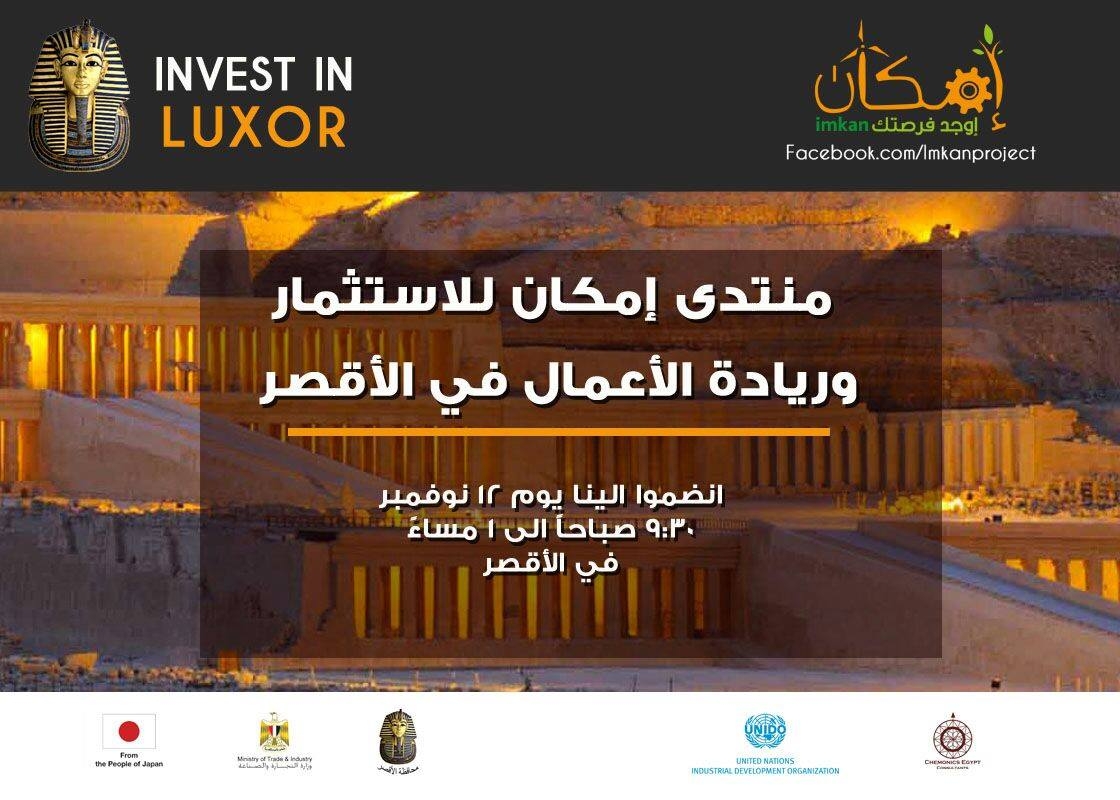 منتدى "استثمر في الأقصر" منظم من قبل مشروع (إمكان) لتشغيل الشباب ودعم ريادة الأعمال في صعيد مصر، وهو مشروع تابع لمنظمة الأمم المتحدة للتنمية الصناعية (اليونيدو) بالتعاون مع وزارة التجارة والصناعة ومحافظة الأقصر بتمويل من حكومة اليابان.
