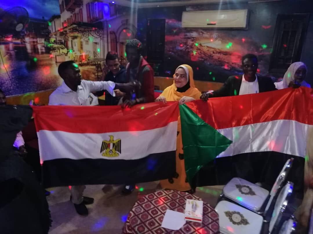 تشير الحصرى ونستعد الان لاقامه احتفاليه "قلب واحد " خلال ايام احتفاليه بالثورة واعياد الاستقلال وسيكون الحفل بطعم الحب بين الشعبين الشقيقين وسيتم تكريم المدربين والدارسين وسيتم رفع علم السودان وعلم مصر وهنقول لكل اهلنا بالسودان مبارك عليكم أعياد الاستقلال والثورة المجيدة .