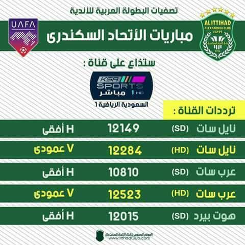 تذاع مباراة فريق الاتحاد السكندري امام الفتح الرباطي المغربي مساء اليوم الجمعة على ملعب مدينة الملك عبدالله الرياضية ( الجوهرة المشعة ) ضمن منافست الجولة الأولى من دور المجموعاات بالبطولة العربية.
