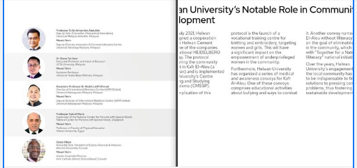 أعلنت جامعة حلوان برئاسة الأستاذ الدكتور ماجد نجم القائم بعمل رئيس الجامعة، عن تواجد الجامعة للمرة الثانية ضمن نشرة اخبار التعليم الدولية الخاصة بمؤسسة QS للتصنيف الدولي فى عددها الخامس، حيث أوضحت المجلة نشاط جامعة حلوان فى خدمة المجتمع وإبراز دورها المجتمعى الحيوى تحت إشراف قطاع خدمة المجتمع وتنمية البيئة برئاسة الأستاذ الدكتور ممدوح مهدى نائب رئيس الجامعة لشئون خدمة المجتمع وتنمية البيئة، ومن خلال مركز رصد ودراسة المشكلات، فى توقيع بروتوكول تعاون مشترك مع شركة أسمنت حلوان وهى واحدة من ضمن شركات مجموعة HEIDELBERG العالمية للأسمنت وكان ذلك بهدف التطوير المجتمعي في منطقة كفر العلو.