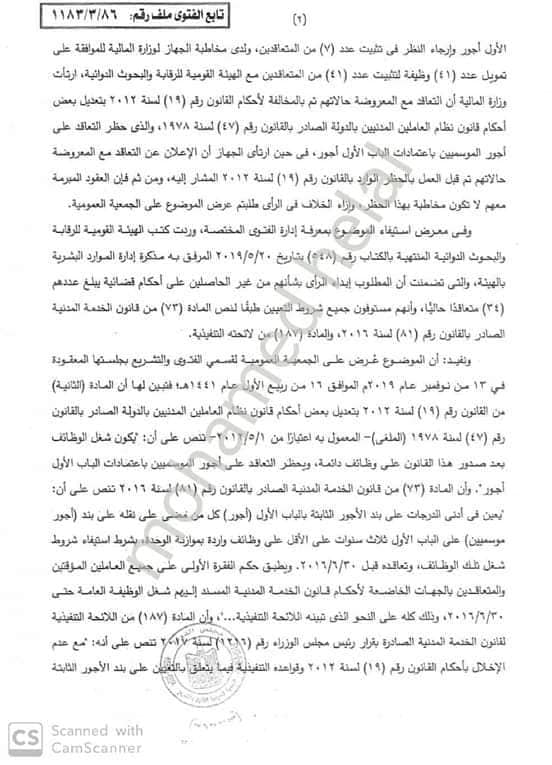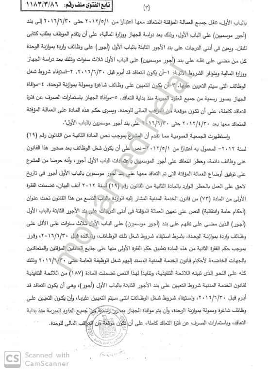في بادرة جديدة وترسيخا لمبادئ القانون واحتراما للدستور أقر مجلس الدولة مبدأ قانونيا هاما يقضي بأحقية العاملين الذين تم تثبيتهن على الصناديق الخاصة بفصل مستقل في كامل الحقوق الوظيفية مثلهم مثل زملائهم العاملين علي الموازنة العامة للدولة وكذلك حقهم في النقل علي باب الأجور الثابت بالباب الأول تنفيذا للقانون والدستور وارسي مجلس الدولة مبدأ قانونيا هاما حيث افتي بأن من تم التعاقد معه من العاملين وقبل صدرو القانون رقم ١٩ لسنة ٢٠١٢ لهم كامل الحقوق الوظيفية ولهم الحق في النقل علي باب الأجور الثابت بالباب الأول علي درجات ممولة بالكامل من الخزانة العامة للدولة حيث أن الهيئة العامة للرقابة والبحوث الدولية قد أرسلت كتابا إلي مجلس الدولة تستفسر عن مدي احقية العاملين علي الصناديق الخاصة بفصل مستقل والمؤقتين لديها في التثببت والنقل علي درجات خالية ممولة من الخزانة العامة للدولة وبدراسة الموضوع بقسمي الفتوي والتشريع بمجلس الدولة أوضحت أحقية العاملين علي النقل علي باب الأجور الثابت بالباب الأول تنفيذا للمادة رقم ٧٣ من قانون الخدمة المدنية والتي تقضي بتعيين كل من أمضي ٣ سنوات علي تاريخ تعاقدة حتي عام ٢٠١٦ لة الحق في التثبيت علي درجة مالية ممولة بالكامل من الخزانة العامةللدولة وفي هذا الإطار افاد الدكتور محمد فؤاد عضو مجلس النواب أن علي الجهاز المركزي للتنظيم والإدارة الوضع بعين الاعتبار فتوي مجلس الدولة وتنفيذها فورا ارساءا للقيم القانونية ولمبادي العدالة والمساواة الذي نص عليهما الدستور وتخفيفا لآلام أكثر من ٣٠٠الف موظف حكومي من البسطاء يعملون بالجهاذ الإداري للدولة يعانون من تردي اوضاعهم المالية والاجتماعية والاقتصادية بسبب عدم انتظام صرف رواتبهم ومستحقاتهم المالية وذلك نظرا لارتباط صرفها بتوافر رصيد بتلك الصناديق من عدمة بالإضافة الى أن الجهاز المركزي للتنظيم والإدارة جمد اوضاعهم الوظيفية مثل الترقيات والتسويات والنقل وغيرها من الحقوق الوظيفية المفترض أن يتم ذلك حيث أنهم يخضعون لنفس القوانين والتشريعات واللوائح المنظمة للعمل بالجهاز الإدارى للدولة ويطبق عليهم قانون الخدمة المدنية وأضاف أنه تقدم بالعديد من مشروعات القوانين والتشريعات والأدوات الرقابية لحل المشكلة وكثيرا من نواب البرلمان وعلي الجهاز المركزي للتنظيم والإدارة عدم المماطلة والتسويف خاصة إلى أن جميع القرآين القانونية تؤيد حقوق العمال في نقلهم على درجات دائمة ممولة من الخزانة العامة للدولة وأن القواعد والنصوص القانونية لا يجوز الالتفات عليها أو الإجتهاد خاصة إلى أن نص المادة ٧٣ من قانون الخدمة المدنية واضح وصريح ويقضي بنقل كل من أمضي على تعاقدة ٣ سنوات حتي عام ٢٠١٦ وهو الأمر الذي بات من باب الاستيعاب علي الجهاز المركزي للتنظيم والإدارة تفعيلة خاصة إلى أن فتوي مجلس الدولة أوضحت تلك الحقيقة ومن ثم فلا يجوز معة الاجتهاد أو الالتفات عليها ويعاني العاملين المؤقتين والمثبتين علي الصناديق الخاصة بفصل مستقل من تردي اوضاعهم المالية بسبب تأخر صرف رواتبهم ومستحقاتهم المالية وذلك نظرا لارتباط صرفها بتوافر رصيد بتلك الصناديق من عدمة بالإضافة الى تجميد اوضاعهم الوظيفية وحقوقهم المشروعة مثل الترقيات والتسويات والنقل والندب وغيرها من الحقوق الوظيفية وبات الأمل معقودا علي مجلس الوزراء والنواب وضع حد لمعاناة هؤلاء العمال البسطاء في ظل حالة الجمود الذي خيمت علي المشهد وفي ظل الصمت الحكومي تجاة قضية العاملين المؤقتين والمثبتين علي الصناديق وغيرها من العمالة المؤقتة التي تحتاج إلى قرار جريء يعيد الأمل والثقة وحقهم في حياة كريمة واستقرار أسري ووظيفي واجتماعي فهل يتدخل مجلس الوزراء لوضع حد لمعاناة هؤلاء العمال البسطاء وهل لدي الجهاز المركزي للتنظيم والإدارة إرادة حقيقية لتنظيم نقلهم على درجات دائمة ممولة من الخزانة العامة للدولة وتنفيذ فتوي مجلس الدولة والتي تقضي بتعيين كل من أمضي على ت
