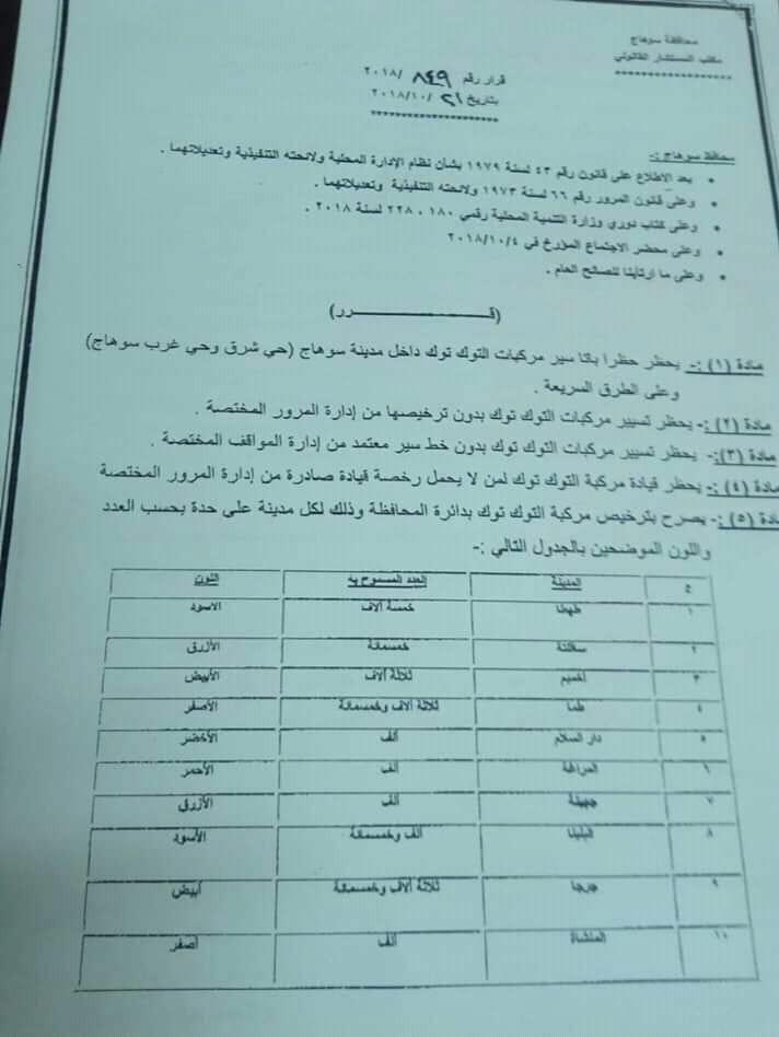 تحدد ضوابط للتوك توك في سوهاج