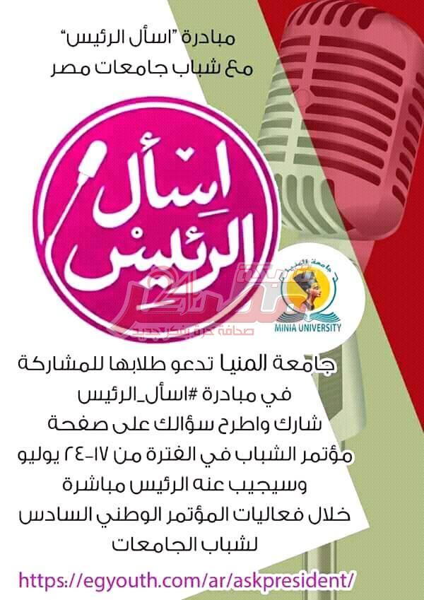 جامعة المنيا تدعو لمبادرة اسال الرئيس مع شباب...