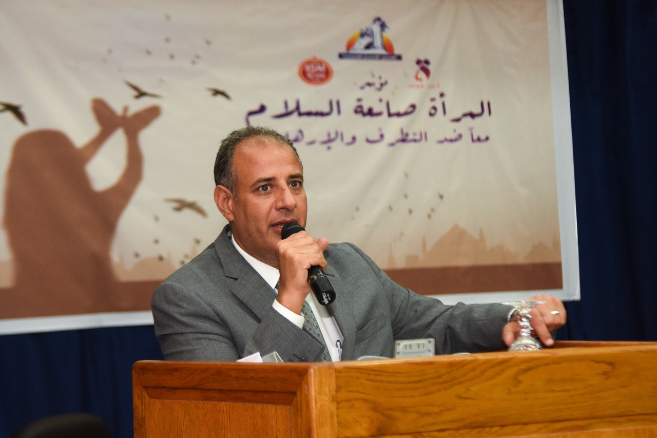 وفي كلمته رحب المحافظ بجميع الحضور مقدما التحية والتقدير للمرأة المصرية ، والذي يتجلى دورها في بناء المجتمع ووضع أحجار ولبنات الأساس في العديد من الموضوعات والتي من أهمها التطرّف والإرهاب ودورها الكبير في مواجهته ، مؤكدا على أهمية تواجدها في جميع المحافل والأحداث التي تحدث في مصر وخارجها ، وما يؤكد ذلك هو اهتمام الدولة وقيادتهابذلك ، وثقتها في تمكين المرأة ، خاصة بإعلان عام ٢٠١٧ بأنه " عام المرأة المصرية " وهو تأكيدا وتعظيما لهذا الدور الهام .