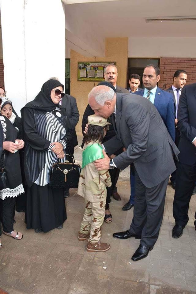 توجهت أرملة الشهيد بالشكر للمحافظ على سرعة استجابته بحضور طابور الصباح بالمدرسة .