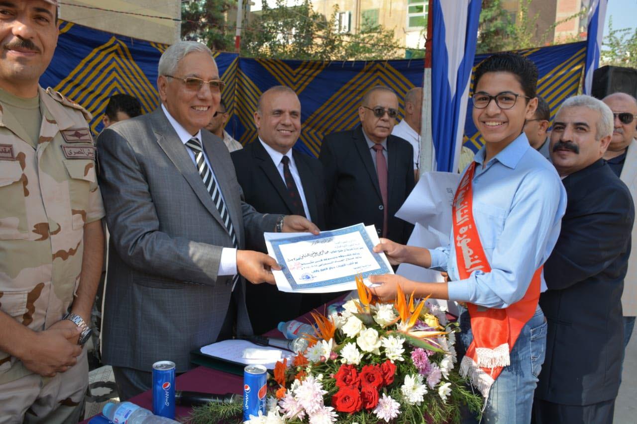 وفي نهاية الزيارة قدم محافظ الدقهلية شهادات تقدير الي الطلاب المتفوقين في الأنشطة والمجالات المختلفة وقدم وكيل وزارة التربية والتعليم درع المدرسة الي محافظ الدقهلية والي المستشار العسكري للمحافظة.