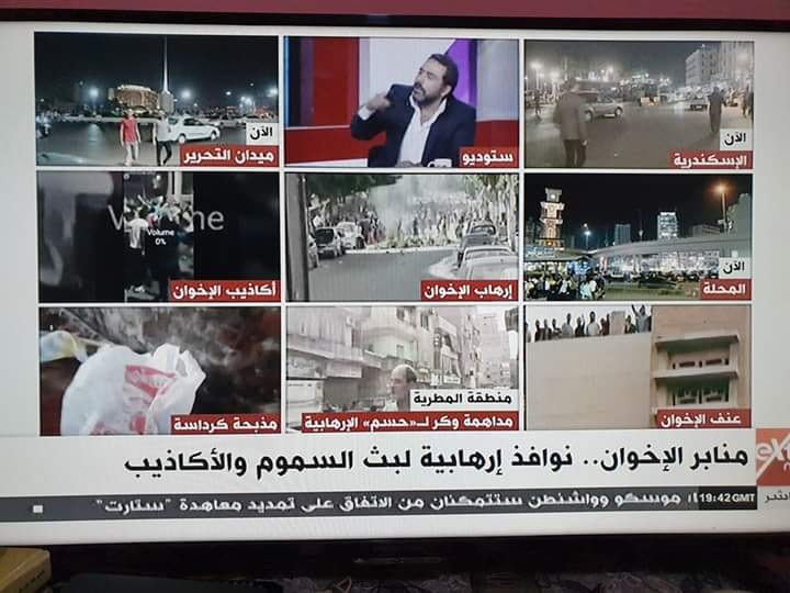 وأضافت ريهام وقالت وعلي نفس القناة تم عرض فيديو وهم يحاولون توضيح حقيقية المظاهرات من عدمها في مصر من خلال ٩ كادرات في شاشة واحدة يذيع فيها :