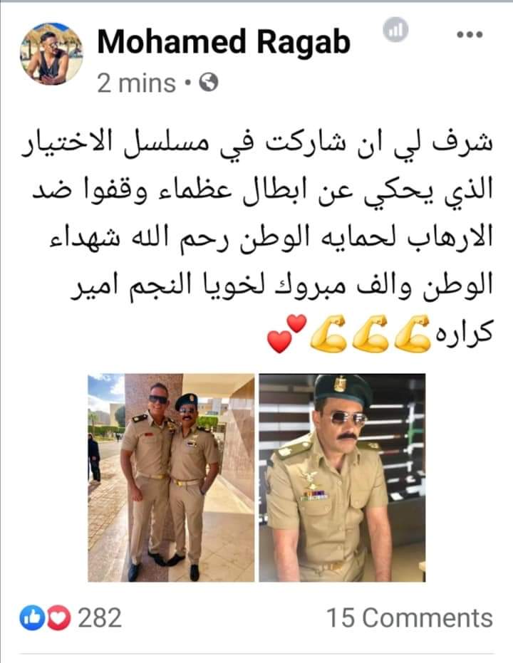 نشر محمد رجب، على صفحته على الفيسبوك، صورة له مع النجم أمير كرارة ( بالزي العسكري) من أحداث المسلسل، مُعَلِّقَاً "شرف لي ان شاركت في مسلسل الاختيار الذي يحكي عن ابطال عظماء وقفوا ضد الارهاب لحمايه الوطن رحم الله شهداء الوطن والف مبروك لخويا النجم امير كراره" . ظهر النجم محمد رجب بالحلقة الأولى من العمل كواحد من الفريق العسكري الذي ألقى القبض على الإرهابي هشام عشماوي ( أحد المخططين و المنفذين للحادث الإرهابي الذي راح ضحيته البطل ( المنسي) ، و الذي كان أيضاً أحد أصدقاء المنسي و زميله، و كان على دراية بأن عشماوي كان أيضاً في يومٍ من الأيام زميل للبطل أحمد المنسي، كواحد من ضباط الصاعقة المصرية قبل أن يترك الجيش، و يصبح واحداً من ألد أعدائه.
