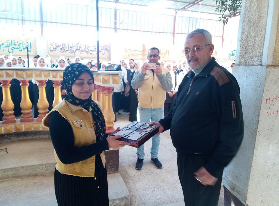 اليوم بحمدالله تم تكريم الطالبة /إيمان عاطف أبوغلاب وذلك لتعيينها معيده في كلية التربية جامعة سوهاج وقام السيد الأستاذ /محمد أبو عمره مدير عام مدرسة فرشوط الثانوية التجارية بتكريم الطالبة بهذه المناسبة وحرصت إدارة المدرسة على أن تجتمع الدكتورة /إيمان عاطف أبوغلاب بالطالبات المميزات في المدرسة كي تحثهم على الجد والإجتهاد من أجل تحقيق أهدافهم مع الأخذ في الحسبان أولا وقبل كل شيء إرضاء المولى عز وجل