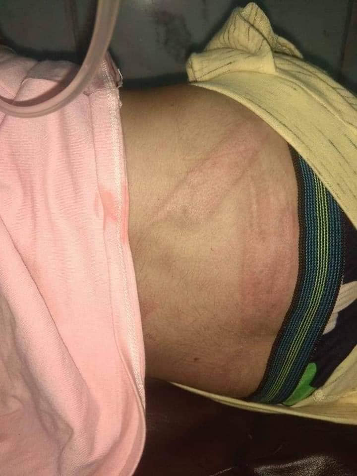 صباح اليوم لم يعجبها تشطيب المطبخ لأن يدي كانت مجروحة نتيجة جرح سابق كانت سببته لي، ففوجئت بها تجذبني من شعري وتطرحني أرضًا، ثم تقف فوقي بقدميها وتوسعني ضربًا بعصا غليظة كانت محتفظة بها لتضربني بها يوميًا حتى أغمى عليّ من شدة الألم والضرب، ولم أفق إلا وأنا في المستشفى.