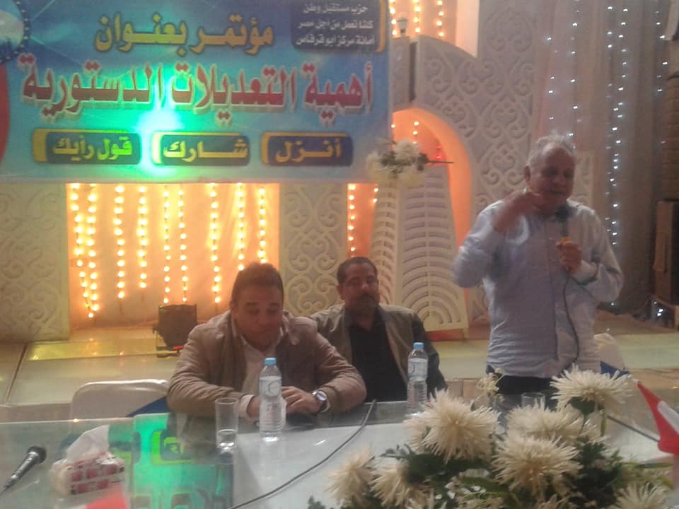 نظمت امانة حزب مستقبل وطن بمركز ابوقرقاص جنوب المنيا مؤتمر حول التعديلات الدستورية واهميتها بمجلس قروى ابوقرقاص البلد تحت شعار " انزل .. شارك .. قول رأيك " برعاية النائب علاء السبيعى أمين المحافظة،والاستاذ وليد عبد القوى أمين التنظيم ، وباشراف المهندس إيهاب حمزة امين المركز وحضور النائب اشرف شوقى ، واعضاء هيئة المكتب بابوقرقاص ، وعدد من القيادات الشعبية والتنفيذية ، ورجال الدين و العمد والمشايخ وأمناء القرى