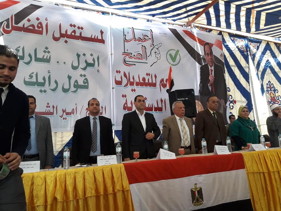 نظم حزب مستقبل وطن برئاسة المهندس اشرف رشاد الشريف بمحافظة كفرالشيخ عدد من ندوات التوعية بالتعديلات الدستورية والدعوة للحشد تحت إشراف المهندس فوزى الرفاعى امين عام الحزب بالمحافظة ففى مركز الرياض عقدت ندوة بحضور النائب عبدالحميد دمرداش امين السياسات والتخطيط الاستراتيجي على مستوى الجمهورية والمهندس فوزي الرفاعي أمين عام الحزب والمحاسب أحمد جعفر الأمين العام المساعد للحزب بالمحافظة ومايسة عبدالجواد أمينة الفلاحين وخالدهلالى عضومجلس النواب والدكتور عامر الجارحى وكرم الشامى امين الحزب بالرياض وجمال الجيار الأمين المساعد وأشرف الدسوقي أمين التنظيم واميرالشرقاوى وفى مركز بلطيم تم تنظيم ندوة كبرى للتوعية بالتعديلات الدستورية والدعوة للحشد بحضور المهندس فوزى الرفاعى وأحمد كمال عطية امين الحزب بالمركز وعدد من القيادات الشعبية والتنفيذية وفى مركز سيدى سالم عقدت ندوة فى قرية الروضة تحت اشراف العمدة محمد زكريا شتا امين الحزب بالمركز بحضور سحر حمدين أمينة المرأة والعمدة ابراهيم جاويش عمدة الروضة. من ناحية أخرى عقدت أمانة التقييم والمتابعة بالمحافظة مساء اليوم إجتماعا تنظيميا للدعوة للحشد فى الاستفتاء جاء ذلك بحضور المهندس حمدى شهاب امين التقييم والمتابعة لوسط وغرب الدلتا والدكتور الغمرى الشوادفى أمين التنظيم وحسن الطراوى امين التقييم والمتابعة بالمحافظة والدكتور ماهر سكران عميد المعهد المتوسط للخدمة الاجتماعية والدكتور هشام كامل امين مساعد أمانة تنظيم المحافظة واعضاء هيئة المكتب وعدد من آمناء التقييم بالمراكز والمدن كما عقدت أمانة العضوية برئاسة محمدعلاء مطاوع إجتماعا تنظيميا مماثلا بحضور أعضاء الامانة بالمحافظة وياتى ذلك فى إطار خطة الامانة العامة المركزية للحزب على مستوى الجمهورية الداعمة للتعديلات الدستورية والدعوة للحشد فى الاستفتاء .