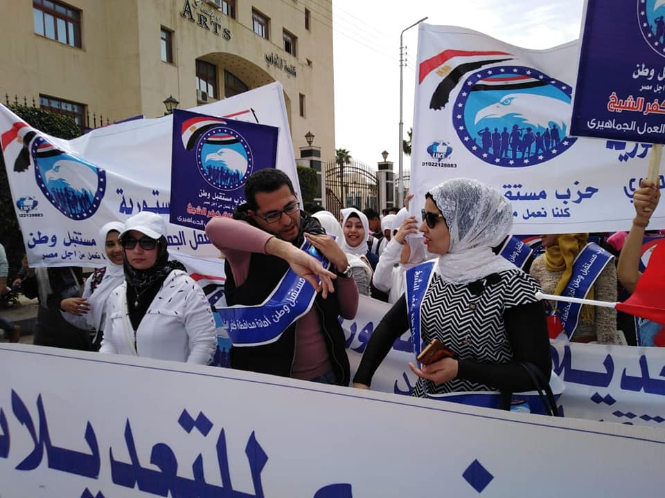 نظم حزب مستقبل وطن برئاسة المهندس اشرف رشاد الشريف بمحافظة كفرالشيخ ماراثون رياضى وعدد من الندوات بالقرى لتأييد التعديلات الدستورية تحت إشراف المهندس فوزى الرفاعى امين عام الحزب بالمحافظة..ففى مدينة كفرالشيخ تم تنظيم ماراثون رياضى للمشي شارك فيه الدكتور على ابوشوشة الأمين العام المساعد للحزب بالمحافظة والدكتور الغمرى الشوادفى أمين التنظيم وعدد من قيادات الحزب بالمحافظة و شباب وفتيات من امانات الحزب وابناء مدينة كفرالشيخ وبدأ الماراثون من أمام مبنى الإدارة العامة لجامعة كفرالشيخ مرورا بديوان عام المحافظة حتى مقرالحزب وحمل الشباب والفتيات اعلام مصر واللافتات المؤيدة للتعديلات الدستورية مرددين الأغانى الوطنية الحماسية.. وفى السياق تم تنظيم ٣ ندوات بقرى المحافظة لتأييد التعديلات والدعوة للحشد الاولى بقرية ابوغنيمة امانة مركز سيدى سالم بحضور العميد سيداحمد محمد سيداحمد امين الشئون البرلمانية وعدد من قيادات الحزب ومئات المواطنين والثانية بقرية كفرقتة أمانة مركز بيلا بحضور قيادات الوحدة الحزبية واهالى القرية والثالثة بقرية الحماد أمانة مركز بلطيم بحضور احمدكمال عطية امين الحزب بالمركز وعدد كبير من اهالى القرية والندوة الرابعة بقرية الدهر مركز مطوبس بحضور الدكتورة فريدة عبدة أمينة الحزب بالمركز وفتحى الشرقاوى نائب الحزب عن الدائرة والعديد من أهالى القرية واكد الحضور فى الندوات على أهمية التعديلات الدستورية لتوسيع دائرة المشاركة السياسية بمايعود بالخير على أبناء الشعب المصرى لتحقيق التنمية الشاملة والحفاظ على الاستقرار وياتى ذلك فى إطار خطة الامانة العامة المركزية لحزب مستقبل وطن على مستوى الجمهورية الداعمة للتعديلات الدستورية والدعوة للحشد فى الاستفتاء .