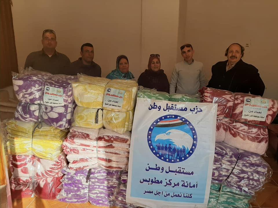 وزع حزب مستقبل وطن برئاسة المهندس اشرف رشاد الشريف بمحافظة كفرالشيخ 150 بطانية بأمانة مركز مطوبس تحت رعاية المهندس فوزى الرفاعى امين الحزب بالمحافظة والمحاسب احمد جعفر امين التنظيم وذلك فى إطار المبادرة الرئاسية حياة كريمة .