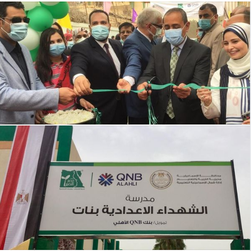 اختتمت مؤسسة مصر الخير وQNB الأهلي فعاليات تطوير مدرسة الشهداء الاعدادية للبنات بمحافظة الاسماعيلية لإتاحة الخدمات التعليمية ل 550طالبة كما تعد تلك المدرسة الوحيدة المخصصة للفتيات في تلك المنطقة مما يساهم بشكل كبير في توفير الخدمات التعليمية لأبناء تلك المنطقة.