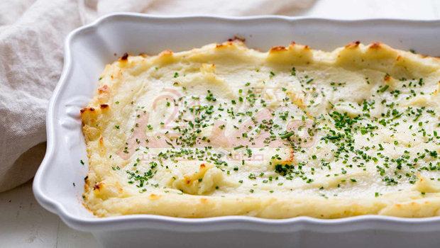 طريقة عمل صينية بطاطس بيوريه بالجبن والزيتون من...