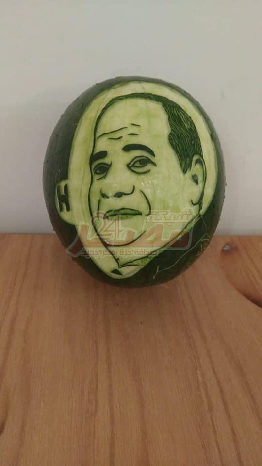 شيف ينحت صورة الرئيس عبد الفتاح السيسي علي البطيخ...