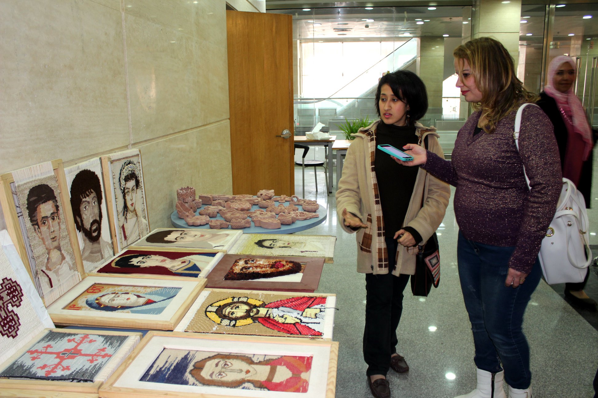 وتقول الفنانة يوستينا ناجى استاذ مساعد بقسم الفن بمعهد الدرسات القبطية اتينا لكى مانشارك فى المعرض المقام على هامش الورشة بمعروضات عديدة من اعمال طلبة المعهد تمثل اكثر من خمسون عمل من النسيج والخزف والزجاج المعشق والموزيك تمثل وجوة كنسية وبورتريهات كلها من خامات ذات بصمات معاصرة يمكن ان توضع فى الكنائس