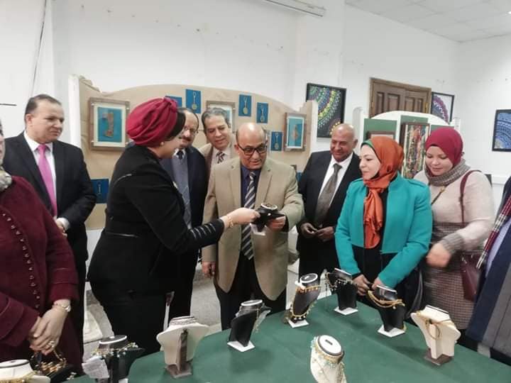 من جانبه تفقد د. نافع أجنحة المعرض مشيداً بالتنظيم والمستوي المتميز للأعمال الفنية المتنوعة لافتاً إلي أن المعرض يأتي في إطار تنفيذ خطة الجامعة للتفاعل مع المجتمع من خلال تعليم الطلاب بالأقسام المختلفة مهارات تساعدهم علي تلبية متطلبات وحاجات سوق العمل.