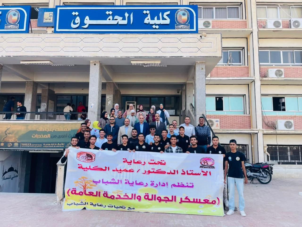نفذ  طلاب كلية الحقوق بجامعة جنوب الوادي ، ورعاية الشباب بالكلية، وطلاب من أجل مصر معسكرًا للخدمة العامة برعاية الدكتور أحمد عكاوي عبد العزيز، رئيس الجامعة، والدكتور محمد سعيد ، نائب رئيس الجامعة لشئون خدمة المجتمع وتنمية البيئه  ، والدكتور أشرف موسى ، نائب رئيس الجامعة لشئون التعليم والطلاب والدكتور عبد الباري سليمان، عميد الكلية، وبحضور الدكتور أبو الحمد مصطفى عميد كلية التجارة والدكتور صدام حسين وكيل كلية التجارة لشئون التعليم والطلاب،  وبإشراف الدكتور عباس مصطفى عباس وكيل الكلية لشئون التعليم والطلاب.