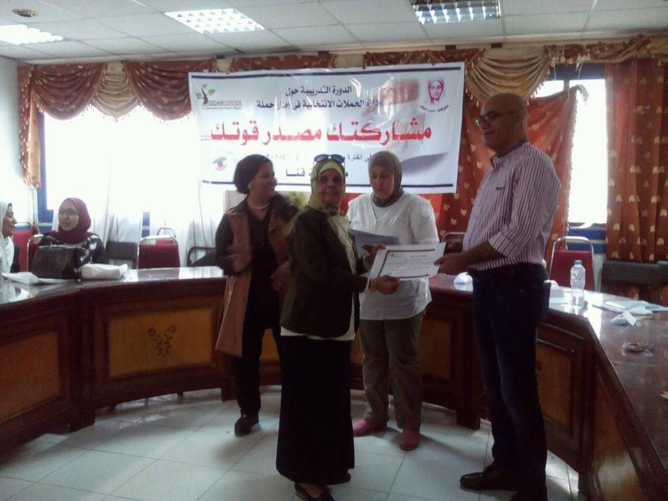 وكيفية ادارة الحملات الانتخأبية للمحليات واستهدف التدريب ٤٠ من سيدات المجتمع القنائى الفاعلات