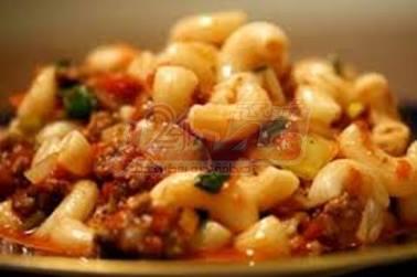 1ك مكرونة صغيرة مسلوقة - 5ثمار من الفلفل الرومى مقطع شرائح - 5ثمار طماطم مقطعة حلقات - بصلة كبيرة مقطع حلقات - ملح - فلفل اسود - نصف كوب زيت .