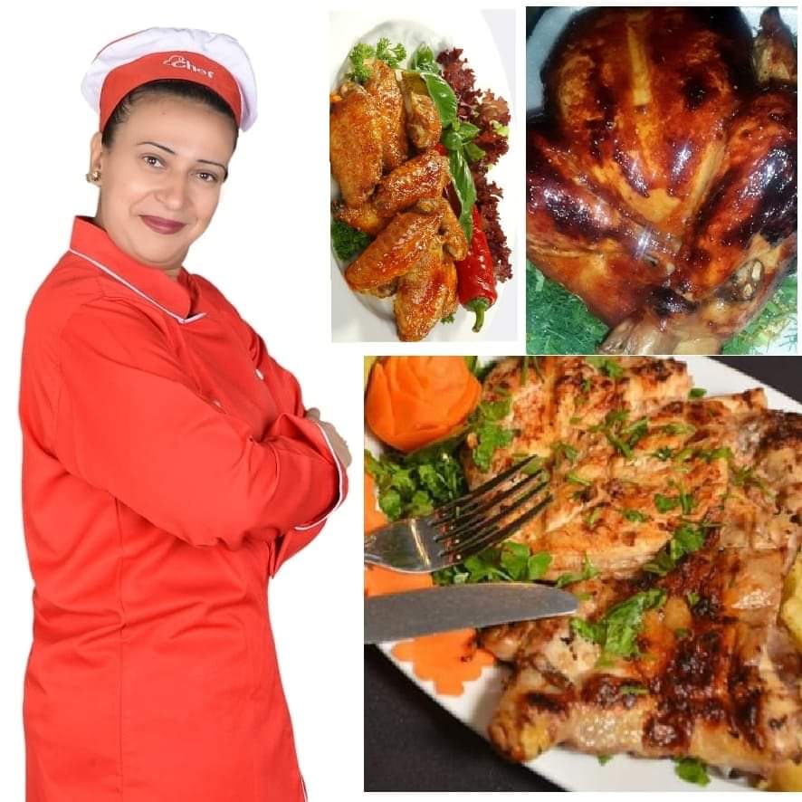 تقطع الفراخ وينزع العظم مع المحافظه على شكل قطع الفراخ