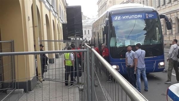 وصلت منذ قليل بعثة منتخب مصر إلى مقر الإقامة بأحد فنادق مدينة سان بطرسبرج الروسية استعدادًا لمواجهة الدب الروسى بعد غد الثلاثاء في نهائيات كأس العالم.