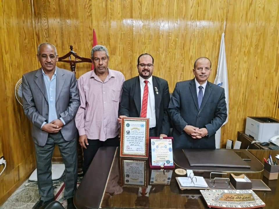 منظمة الضمير العالمي لحقوق الإنسان تهدي درع التميز إلي الدكتور صبري خالد وكيل وزارة التربية والتعليم بمحافظة قنا لتجديد الثقه