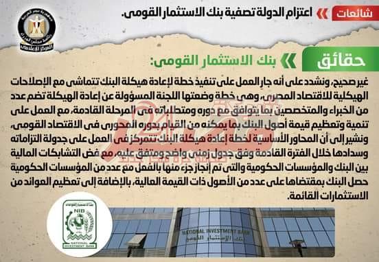 شائعة: اعتزام الدولة تصفية بنك الاستثمار القومي